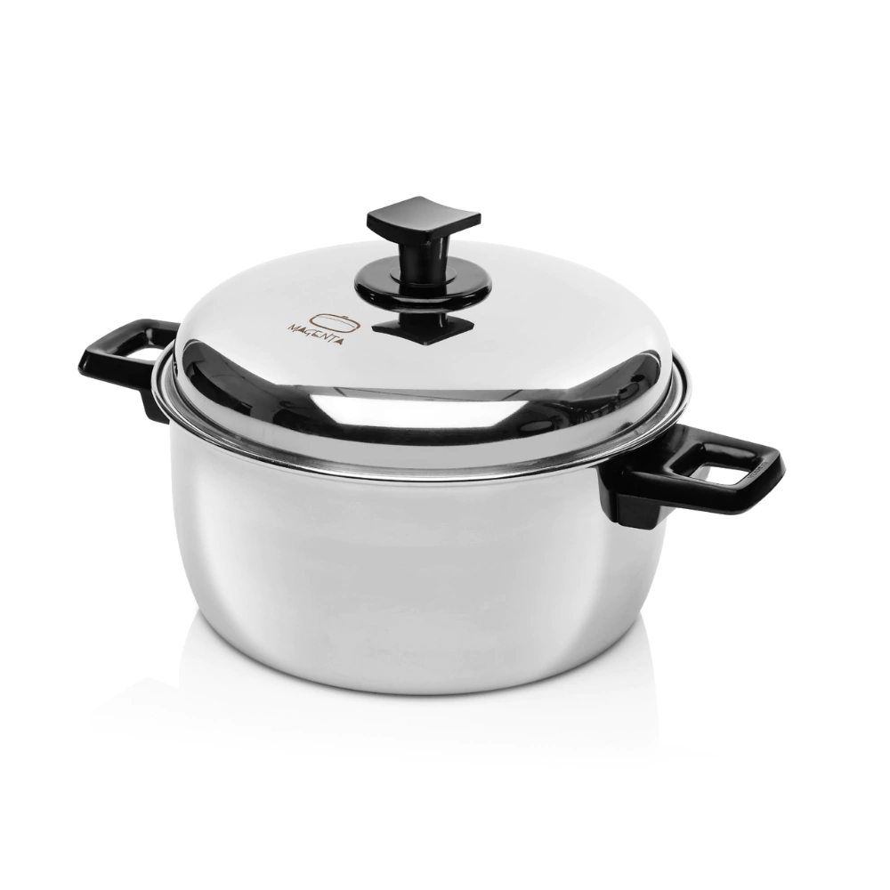 La Línea Cotidiana Magenta by Gamuza está realizada en acero inoxidable AISI 430 con accesorios en baquelita. Apta inducción.